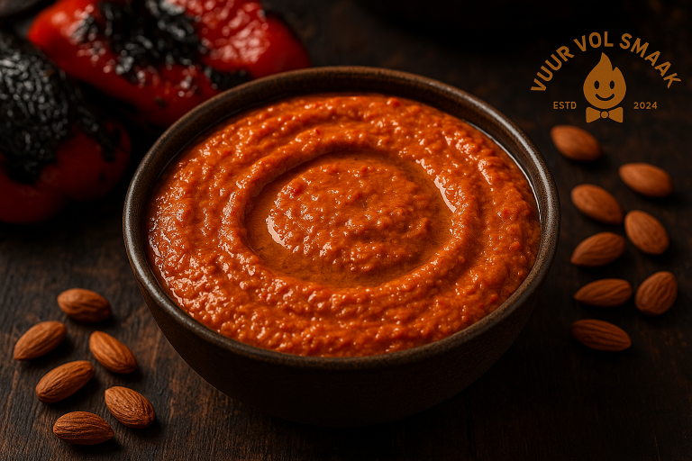 Romige Romesco-dip met gegrilde paprika’s, geroosterde amandelen, tomaat en een vleugje sherryazijn. Licht rokerig, vol van smaak en heerlijk bij vlees, vis, groenten of knapperig brood. Perfect als smaakmaker tijdens de BBQ of als luxe borreldip.